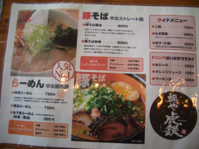 今年の食べおさめになるかもしれないので、あらとんに向かいますが、店内満員のため、あきらめます。そのまま車を走らせ、麺や虎鉄八軒店(住所:札幌市西区八軒5条東4丁目5-52、TEL:011-737-8450)に行きました。