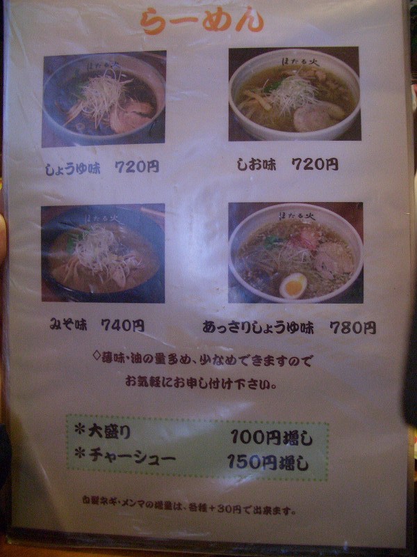 昼を家で食べようかと思い、車を走らせていたら、これも思わず前を通りかかった、麺匠 ほたる火(住所:札幌市西区八軒6条東2丁目8-2、TEL:011-616-2143)に寄ってしまいました。