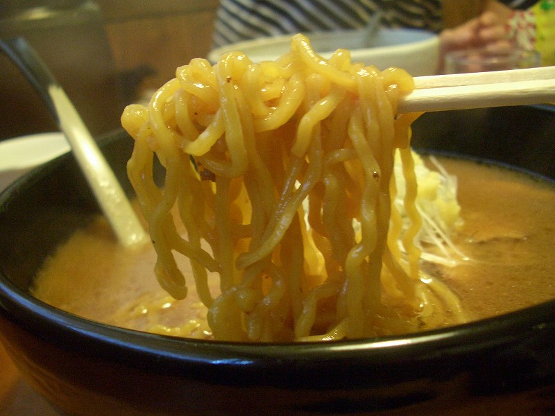 スープを一口飲むと、味噌の香ばしさ、控えめですがスパイスの味で、純すみテイストを感じます。ただ、塩っ気が強く、スープだけを飲むと、水が飲みたくなります。