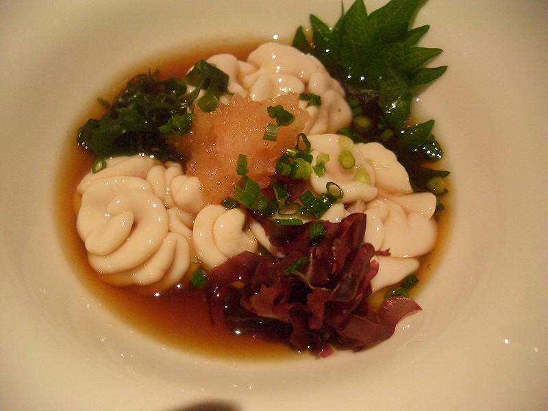 白髪ネギの上にのっているのは、純すみ系に生姜はかかせないです。」