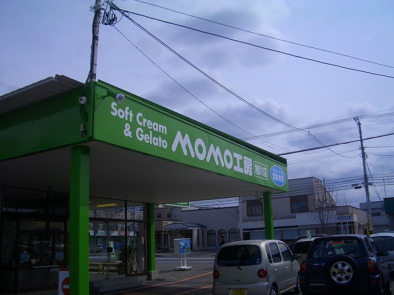 今日の旅は、MOMO工房(住所:旭川市豊岡15条7丁目4-16、TEL:0166-32-6090)です。ドライブスルーができるソフトクリーム屋さんです。