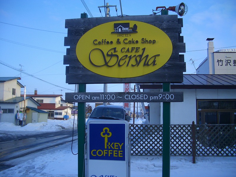 今日の旅は、CAFE Sersha(住所:旭川市永山3条16丁目3-6、TEL:0166-48-1562)です。以前から、『Coffe & Cake Shop』と看板がでていたので、チェケラッチョしていた店で、お店の人に聞いてみると、ケーキのテイクアウトができると言うことなので買うことにしました。他にもカレーなどのメニューもありましたので、食事もできると思います。