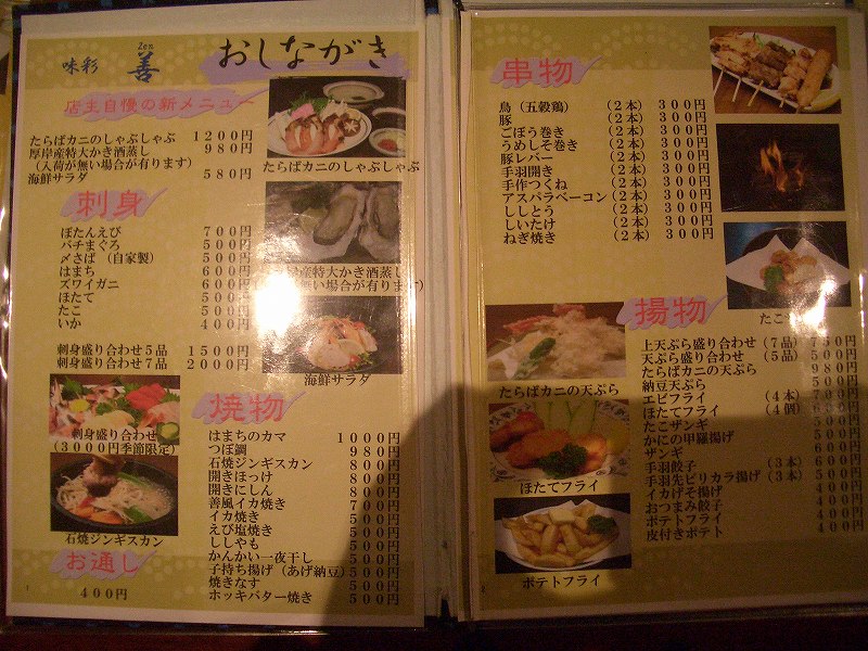 今日の旅は、味彩 善(住所:旭川市5条通7丁目、TEL:0166-23-2455)です。FOODSYOGUNSAMA降臨のため、宴の席を設けました。