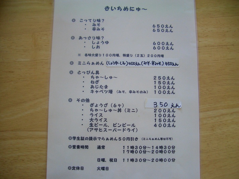 味が3(味噌が4、塩が2)、雰囲気が4、価格が4 あがった。