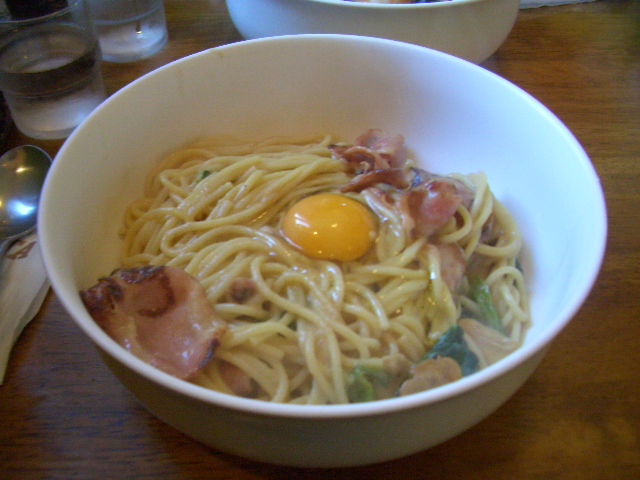 パスタオリジナルソース ベーコン(トッピング 生卵)(720円)があらわれた。