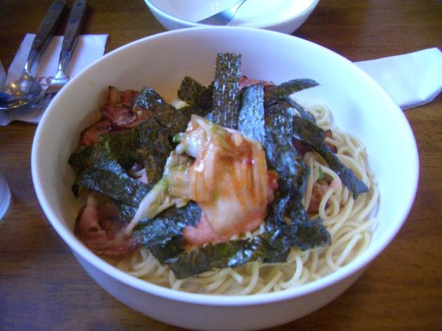 タラコソース ベーコン(トッピング キムチ)(870円)があらわれた。