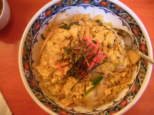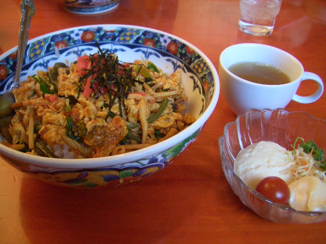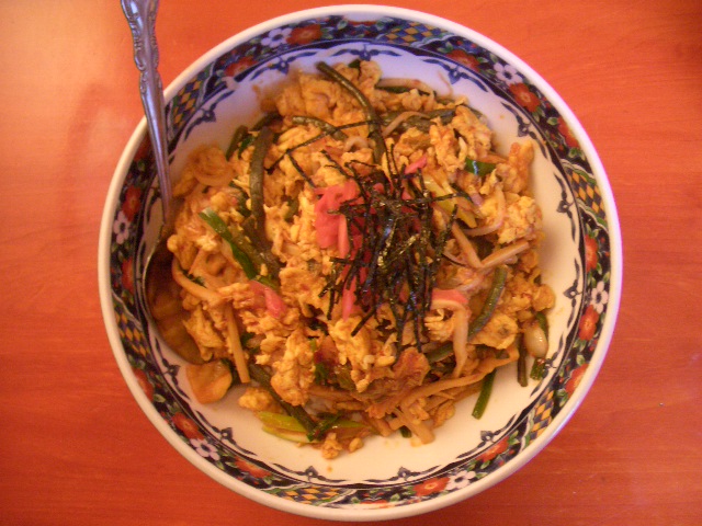 FOODMAM「本当は、朝鮮チラシが食べたいんだけど、DRENに辛いのは食べさせられないので、中華チラシにするわ。朝鮮チラシと似たかんじね。辛くない分とりがらっぽい味が感じられるわ。朝鮮チラシと負けず劣らず、おいしいわ。こっちにも、サラダとスープがついているといいのに。」